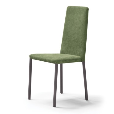 Dimensioni in CM: L 45 x P 50 x H 96 Sedia rivestita in tessuto effetto due toni altamente resistente con gambe in metallo (verde oliva)