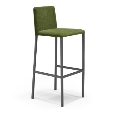 Dimensioni in CM: 41x38x103 Sgabello con altezza seduta 63 CM con gambe in metallo con gambe ghisa rivestito in tessuto antimacchia. (verde oliva)