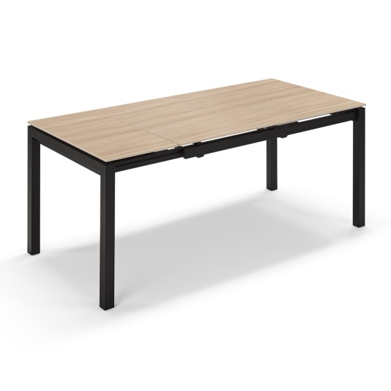 Tavolo allungabile lateralmente con meccanismo scorrevole.