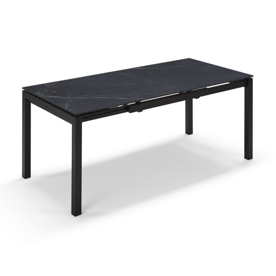 Tavolo allungabile lateralmente con meccanismo scorrevole.