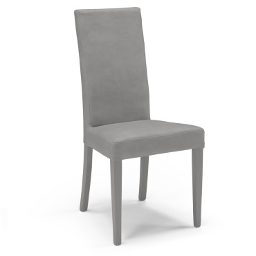 Dimensioni in CM: 47x53x100 Sedia con gambe in legno laccate in tinta rivestita in tessutoidrorepellente e antimacchia. (Grigio)
