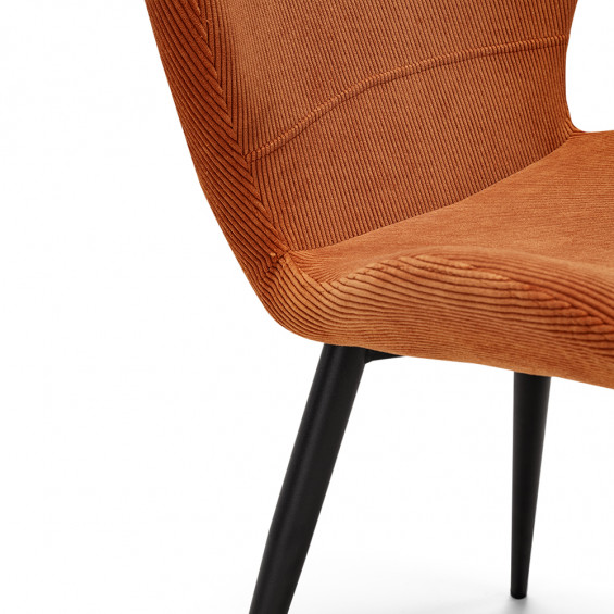 Sedia con gambe coniche in metallo, rivestita in tessuto antimacchia E\' rivestita in tessuto uf865 doppio tono ricco di effetti simile alla canapa, naturale e fresco, morbido al tatto, ha un assorbimento dei liquidi ridotto. WATER REPELLENT 86X62X50 altezza seduta 47