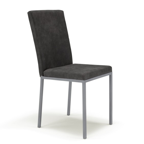 Dimensioni in CM: 42 x 54 x 93 Sedia con gambe in metallo rivestita in tessuto idrorepellente e antimacchia. (Moka bufalo / gambe silver)