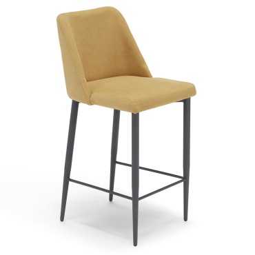 Dimensioni in CM: L 46 x P 50 x H SEDUTA 63 o 73 Sedia con gambe coniche in metallo, rivestita in tessuto Lo sgabello è rivestito in tessuto antimacchia, idrorepellente morbido al tatto che grazie alla sua struttura ha un assorbimento dei liquidi ridotto (le gocce non vengono assorbite ma restano in superficie).