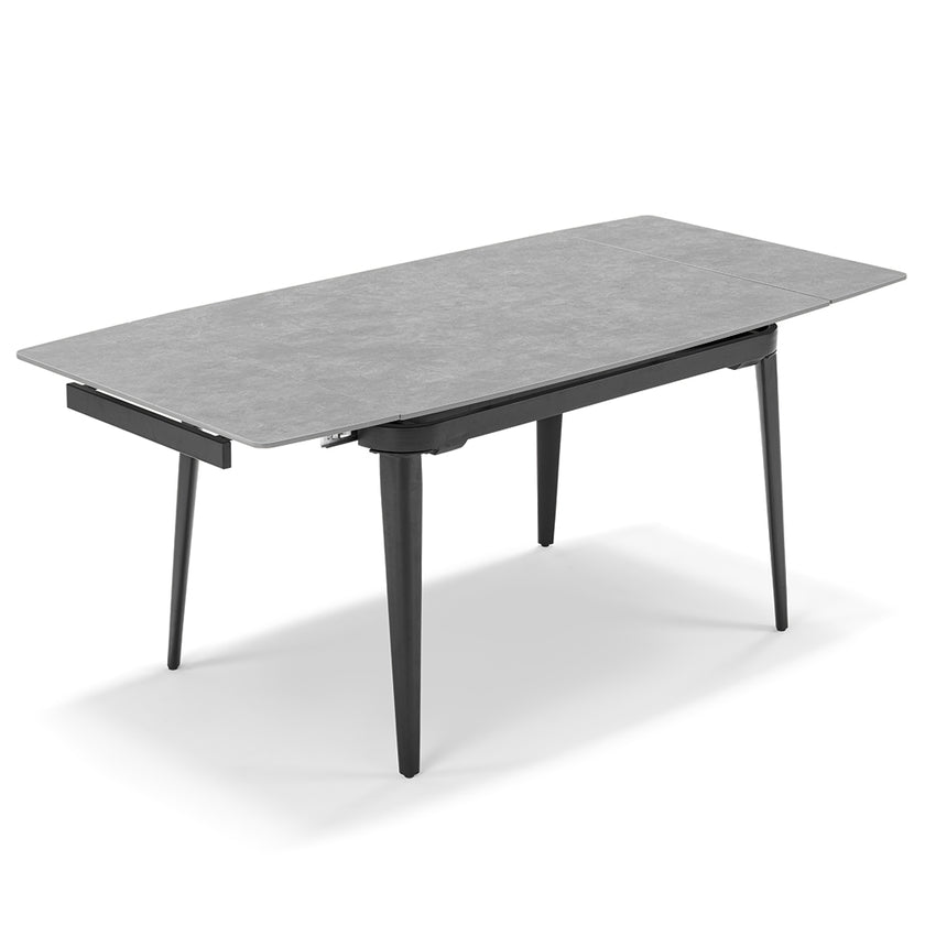 TAVOLO ALLUNGABILE A 160 CM DIMENSIONI IN CM: L 110 (+2X25) P 72 H 75 (2 ALLUNGHE DA 25 CM) TOP IN GRÈS CON BASE GHISA Tavolo allungabile lateralmente con piano in grès ceramico impermeabile resistente ai graffi , gambe in metallo.
