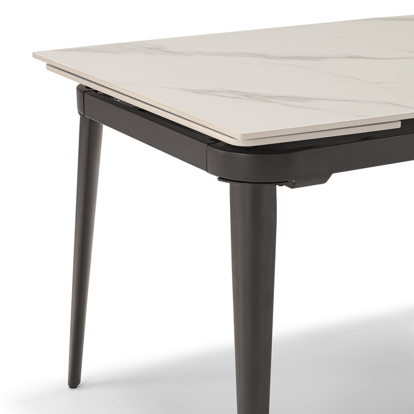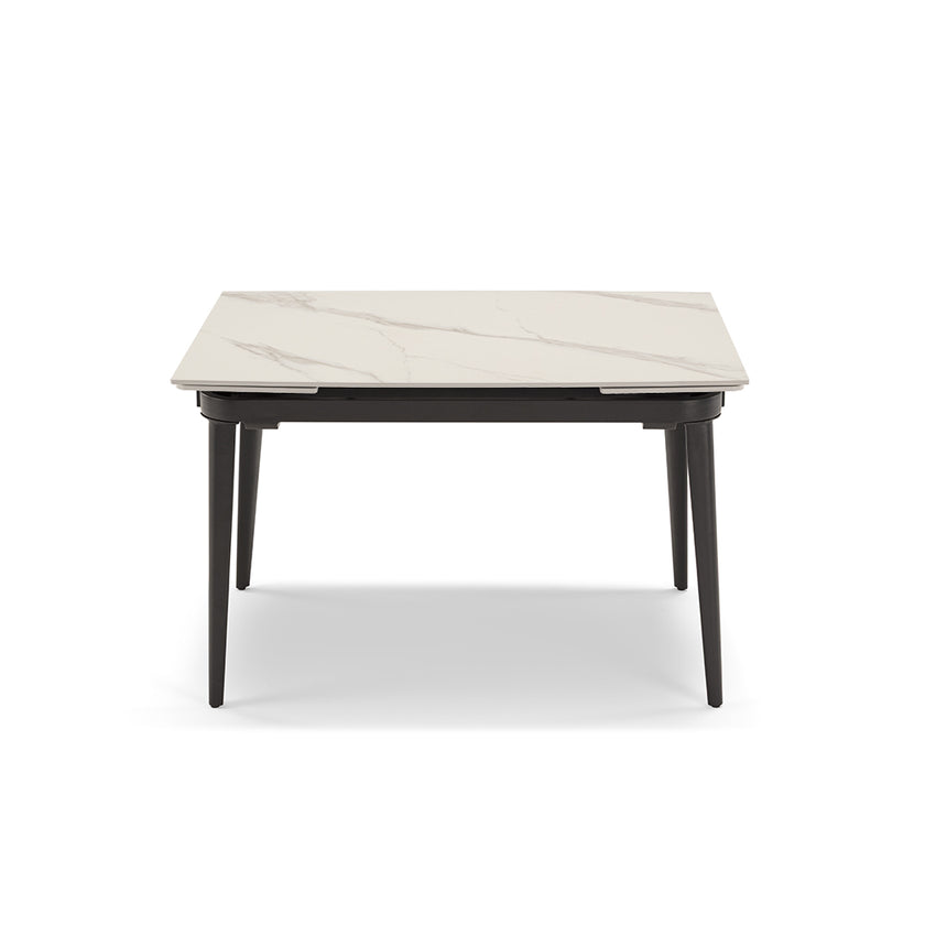 TAVOLO ALLUNGABILE A 160 CM DIMENSIONI IN CM: L 110 (+2X25) P 72 H 75 (2 ALLUNGHE DA 25 CM) TOP IN GRÈS CON BASE GHISA Tavolo allungabile lateralmente con piano in grès ceramico impermeabile resistente ai graffi , gambe in metallo.